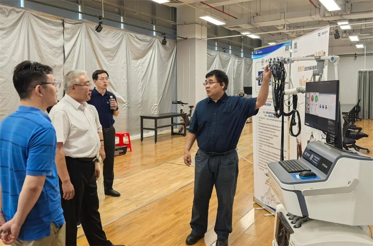 北航生物与医学工程学院、医学科学与工程学院院长、高端医疗装备和器械概念验证平台主任樊瑜波教授陪同刘晖主任一行参观概念验证平台,重点介绍了平台建立一年来培育、验证熟化的项目,包括体外膜肺氧合(ECMO)系统、血管内全光学超声系统、多模态手功能康复机器人、个体化脑精准调控治疗系统、智能血管功能康复仪、3D个性化骨增量支架等,以及平台下一步发展举措。